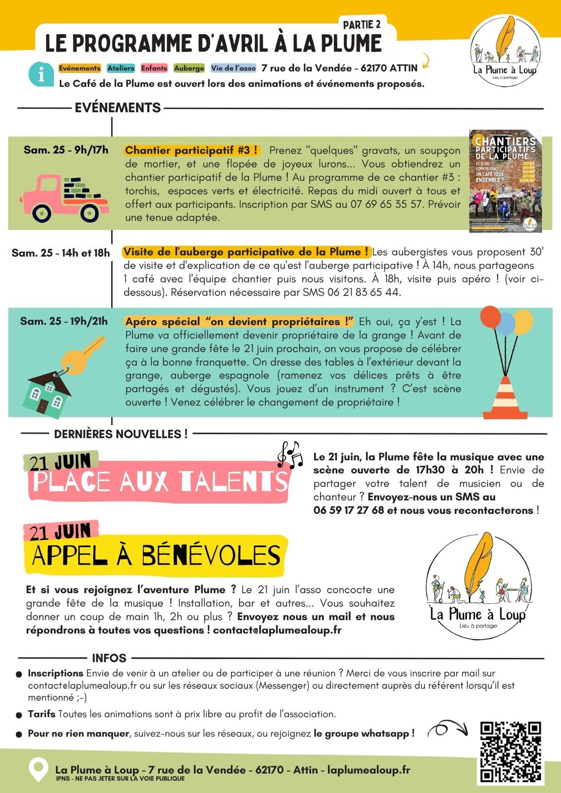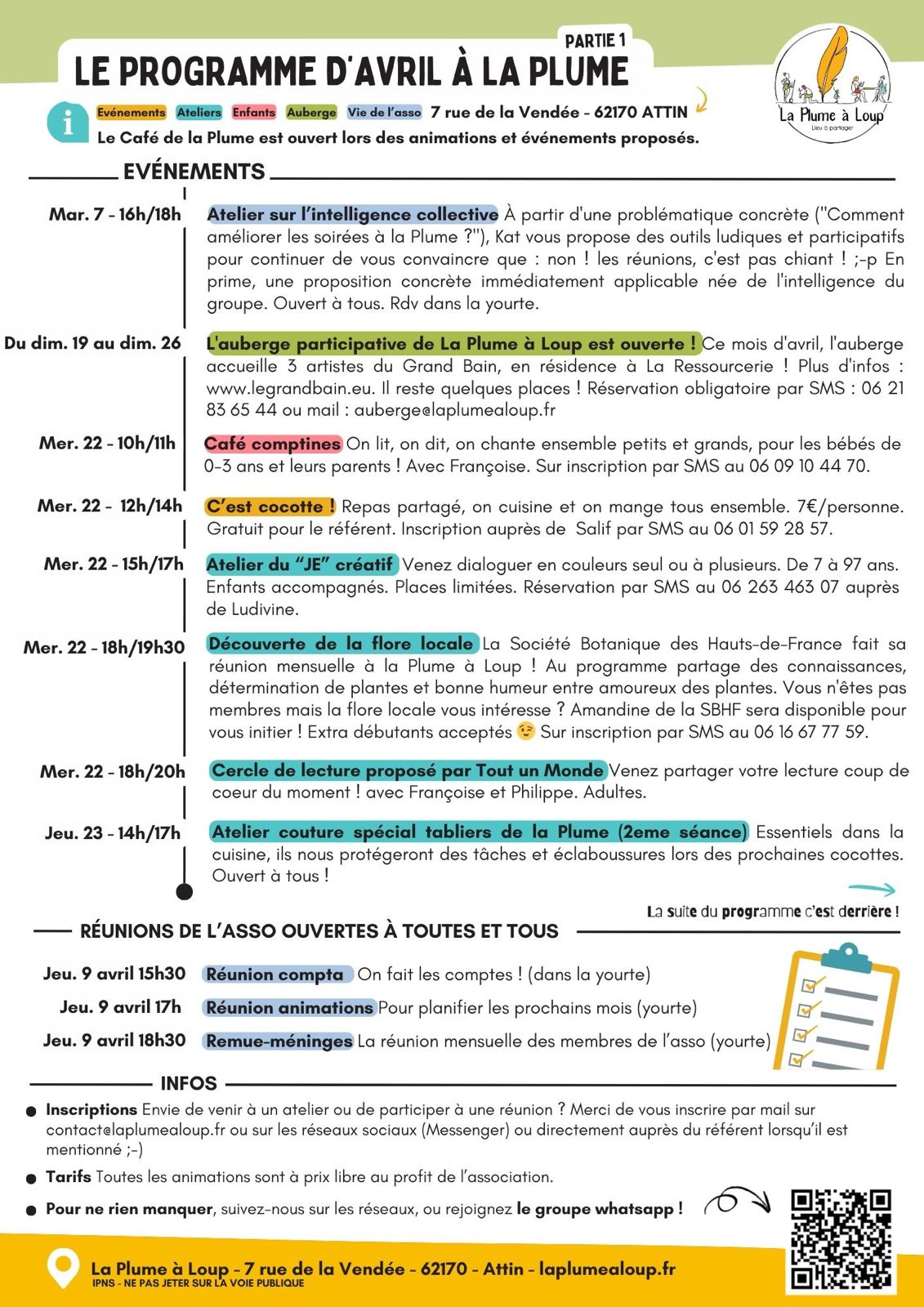 La Plume ouvre 1 semaine / mois