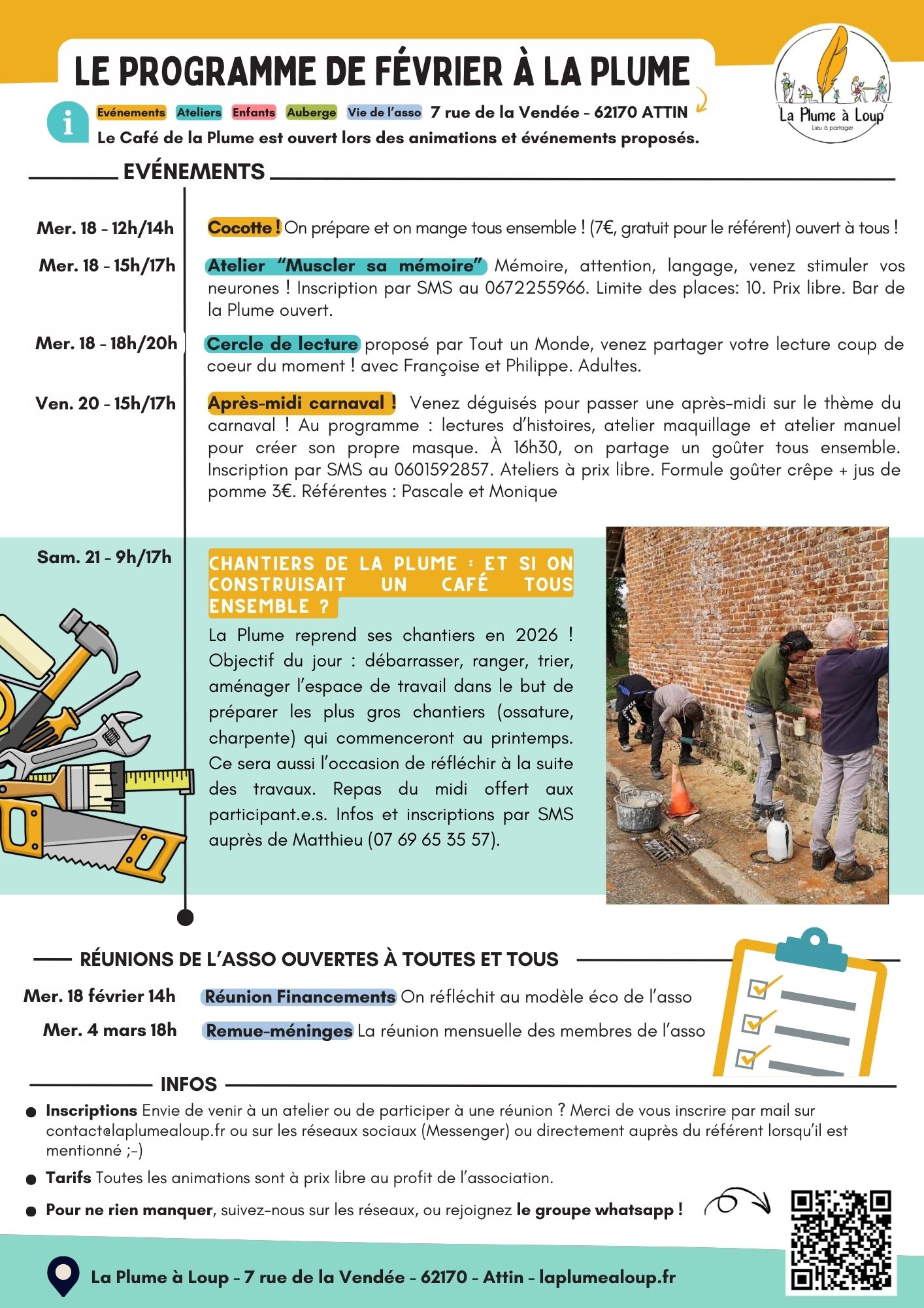 Les infos les plus récentes sont sur notre page FaceBook : https://www.facebook.com/laplumealoup